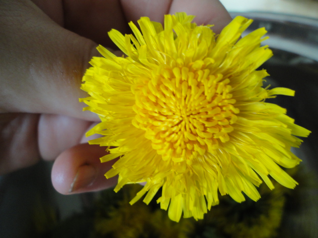 Dandelion flower are lovely to use in a number of ways. You can add them to honey to make Dandelion honey. You can add them to butter. You can add them to dough and make cakes with them or mini doughnuts. You can use them to make Tea or in meat glaze.