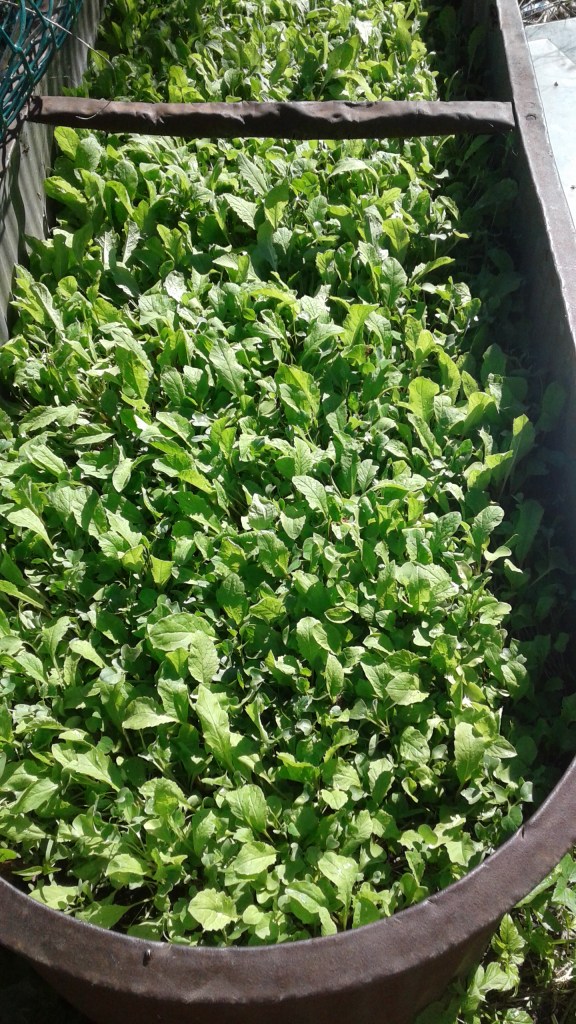 Week three in the horse trough salad green garden. lots of picking to be done for greens this week.  There is lots of salad to be had to go with my wilder forage pickings.