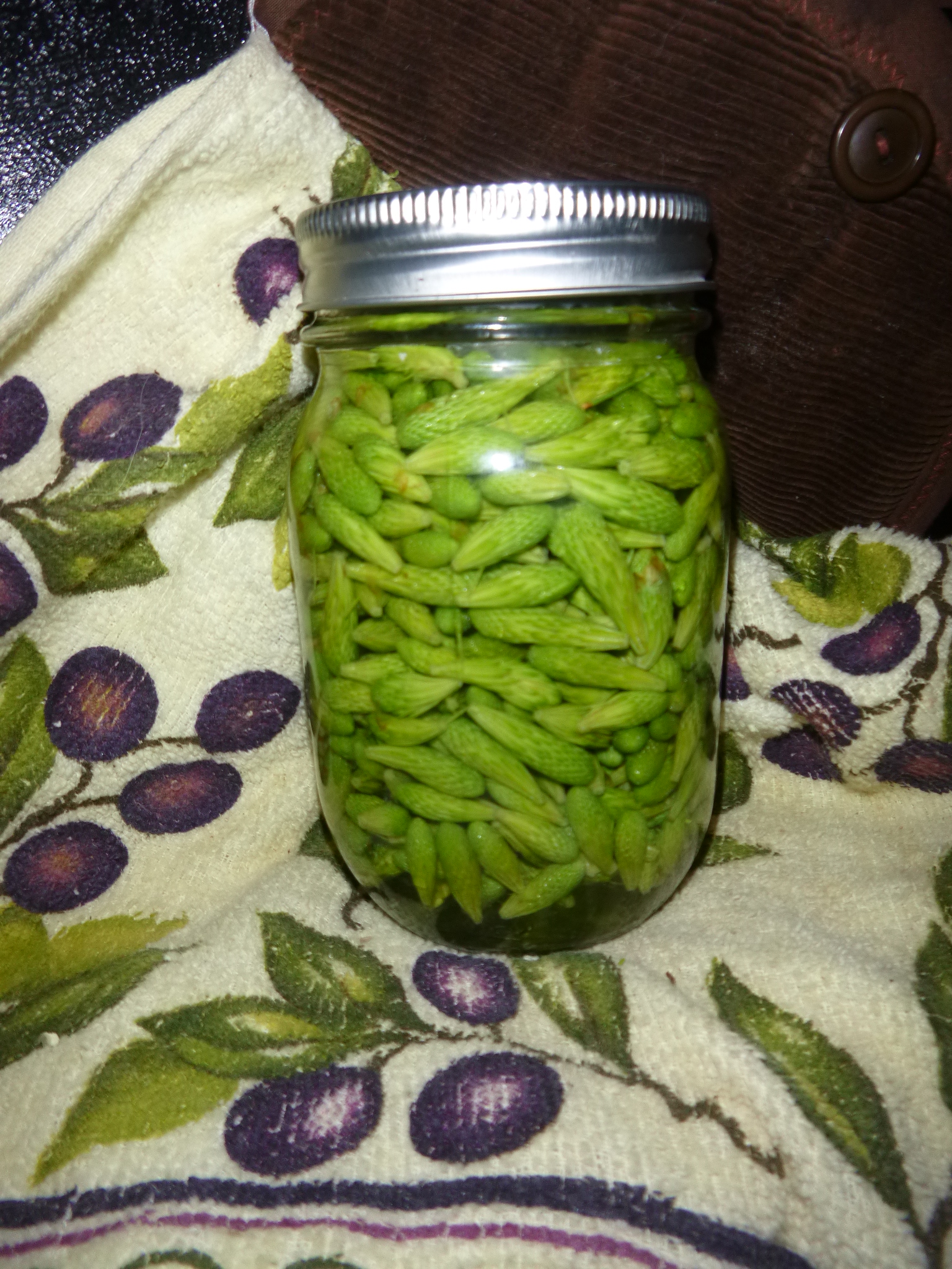 O yes, it’s that time of year again.. Spruce Tip season.. As I was mowing in the diamond garden, I looked at the spruce tree’s an saw that its spruce tip picking season and that the pollen is going to be at the perfect picking this weekend. I love my spruce tips in a big way. I have chosen this post to re-share for the 31 day challenge with a link at the bottom to many more ways to use spruce tips 🙂 Enjoy..