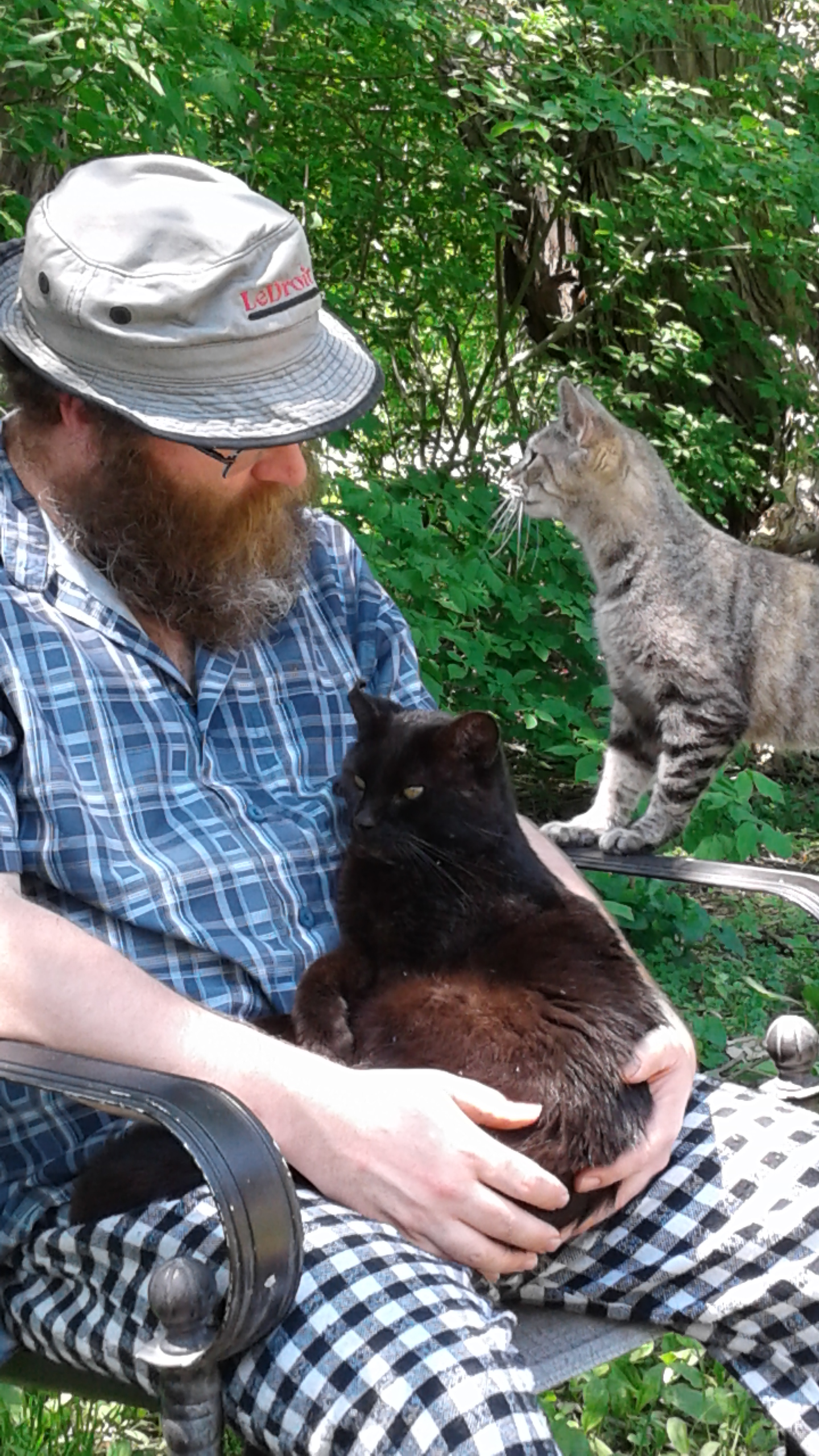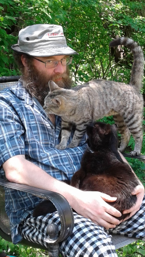 Ah, Sweet Baby Marble Purrpot. You are greatly missed on the farm. I love this photo so much because it has DH with his much loved kitties but even more so, it has Marble’s daddy cat Sunny. Sunny was the father is Mable, Faith and Patrick. He gave us the most outstanding farm cats, friendly, cuddly but outstanding hunters. Marbles mother did not hunt so Sunny took the task on to teach the kittens how to be hunters. I have never seen a more active father cat. He was fixed at the same time as the kittens were, so those three will be the only sunny kittens we will have.