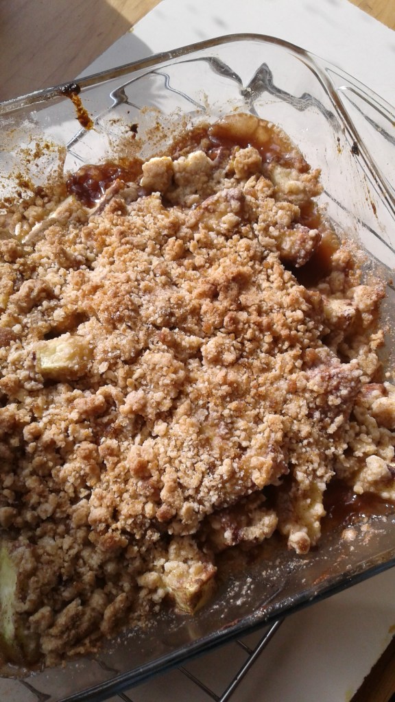 Place the filling in your pan, cover with your topping and bake approx. 40 to 45 min at 350 please check the middle with a folk to make sure that the Zapples are cooked though, if needed do another 5 min. Can be served hot with a bit of ice cream or served Cold as is or with a dollop of whipped cream.