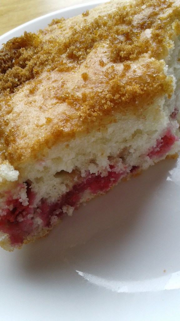 Our Dessert or stop for a bite to eat was a big old pan of a nice white cake with our home-grown mid-summer raspberry’s with a brown sugar baked in topping. I used the berries frozen to keep them from bleeding too much and I made the cake in a very large pan so it’s not very high at all but turned out just right 🙂