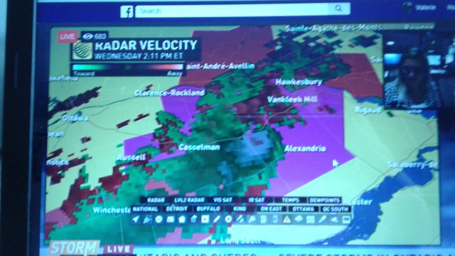 It was a good one and we both had to admit that it was a relief that the big old tree’s were down as we did not need to worry about them coming down. We got a short hard storm, we got 1 and half inches of rain in 20 minutes, we got high winds and we got some really good cracks of lightning and thunder over top us but it would appear that the worst went past us, there was recorded 120 km hour wind or wind gusts at the local town, it took of bolted down decks to give you an idea. There was a confirmed twister that took out two barns and there is reports of two more but it came down to an area that didn’t do damage to anything other than farmers fields.