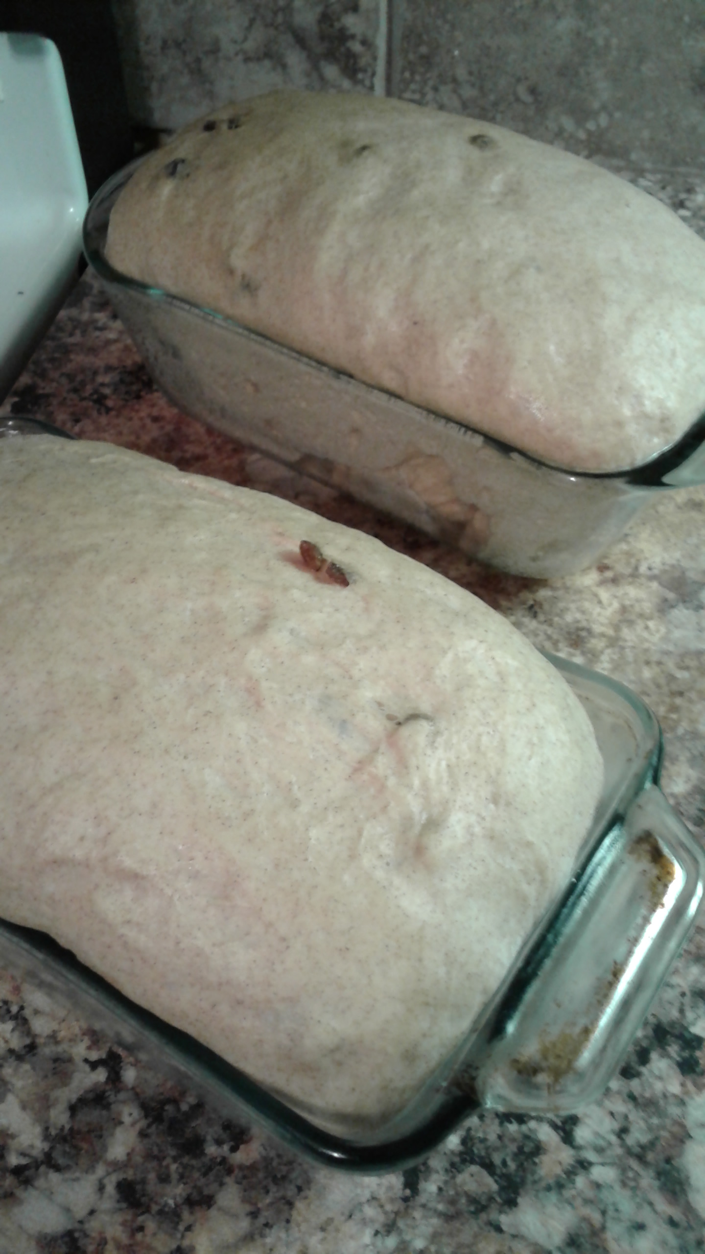 I had made a half-white/half-whole wheat bread last week and I was just not feeling it this week, so I made a batch of Cinnamon Raison Bread. I had to laugh, I have been using up the last of a yeast jar and its been working but not great.. which meant I was using a touch more yeast to get my lift. I opened a new jar for this batch and WOW.. I didn’t realize just how much rise I was going to get LOL