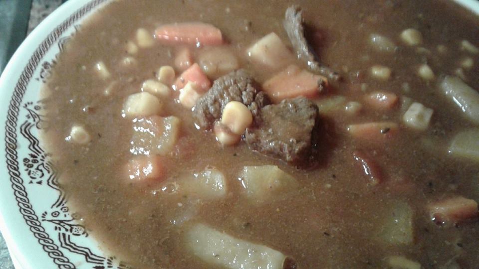 Then add everything else on the list and slower the heat and let it simmer together for an hour but two is even better.. Mine took a total of four hours of slow simmer before it was served with fluffy Baking Powder Biscuits.