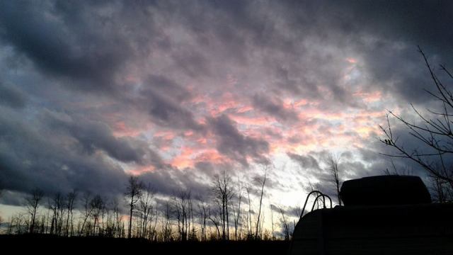 Spent some time outside this afternoon and the wind is bad! Not nearly as bad as other areas of the province is getting but still it is battering the farm.. Amazing Sunset!