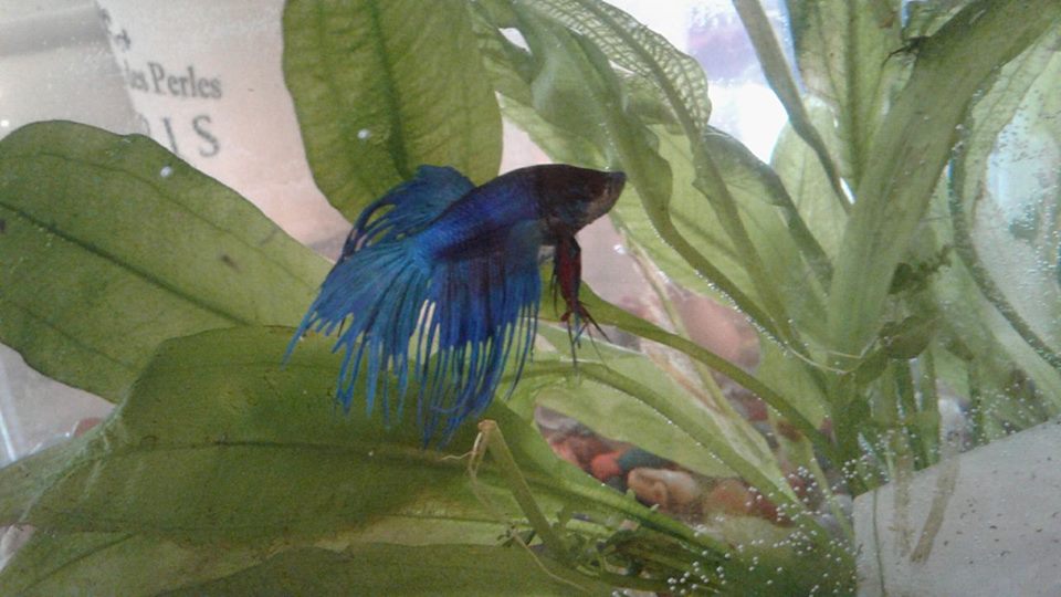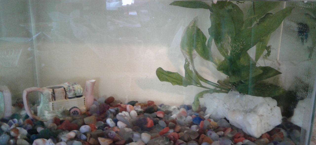 It took a good scrub and then I got it set up and moved Blue Bruce the fighting fish into his new digs.. so much room.. the fish bowl the plant seemed huge and Bruce was big.. lol.. now the tank seems very empty, I do have nine snails and one fish.