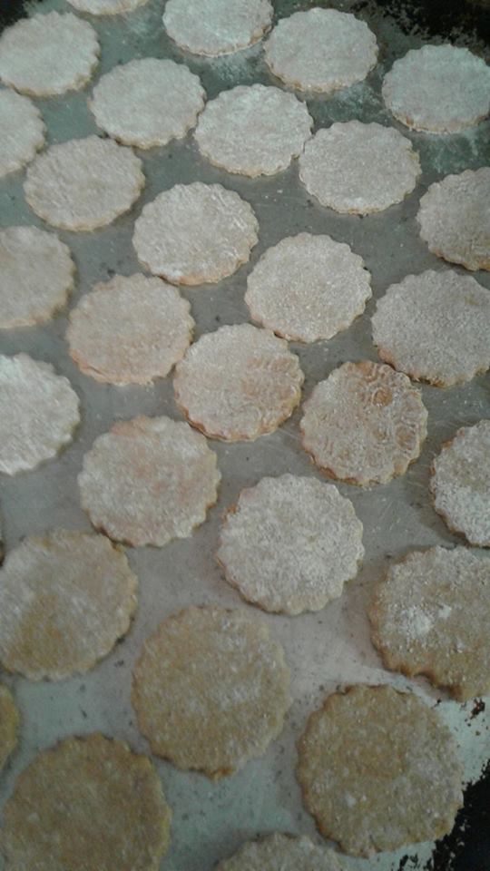 That’s it folks.. Blend it together until if forms a ball, I split it into two to work on the roll out and cutting the cookies. you will need more flour to dust your cutting board and your dough while you roll it out..