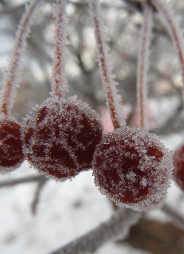 Sunday hubby slept in and I took to the outside to get extreme close-ups in a hoarfrost delightful photo session.