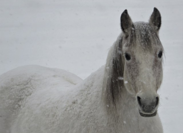 Ya, the big guys could go the barn but they don’t seem to mind the snow in the least.. and they do like to watch the world go by. They have their big lean too and they have their spots in the big barn but give them a choice and they are out in the weather..