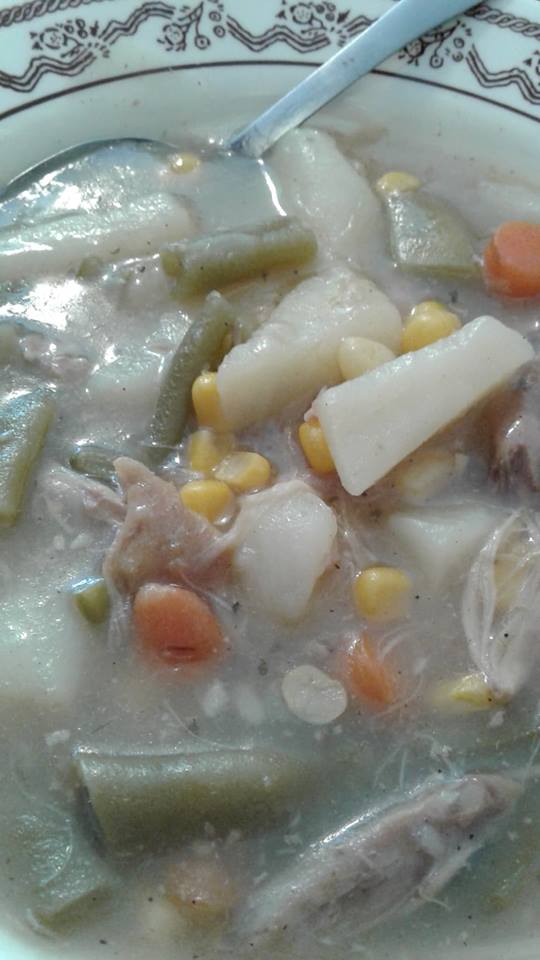 At that point you can add your choice of the way to thicken the stew, I use Cornstarch and I used half a cup of it mixed with water to do mine.. however other people prefer arrow-root powder or some even use a bit of instant mashed potato to do the job..  how its done is very flexible. You will notice in the photo that there appears to be different kinds of beans in the stew, that is because in the summer, I was growing different kinds and harvested them all, prepped them and in some bags mixed them together for winter use.