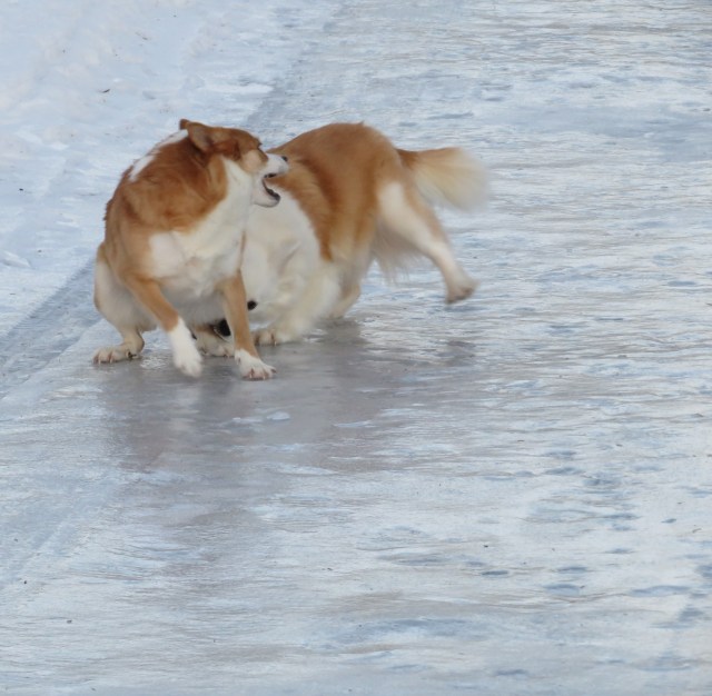 The farm hard ice over deepish snow.. Take a look at this photo I took of the girls playing.. that sheet of ice is my driveway.. nothing but Ice, Ice Baby.
