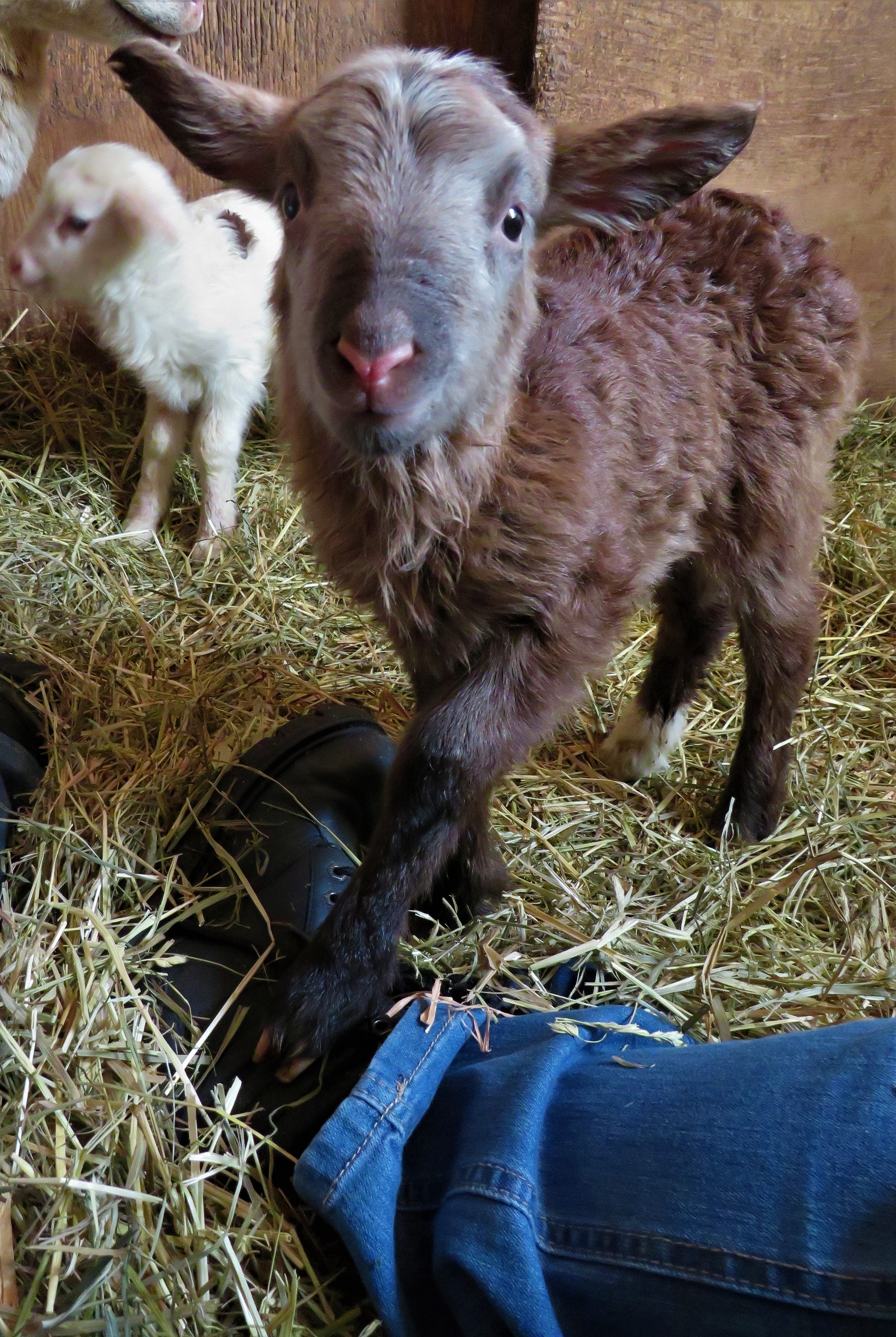 I thought that little Milkdud was sooo cute from the first pictures you posted of those two. I mean all lambs are cute but I love the coloring and the eyes of that one especially.