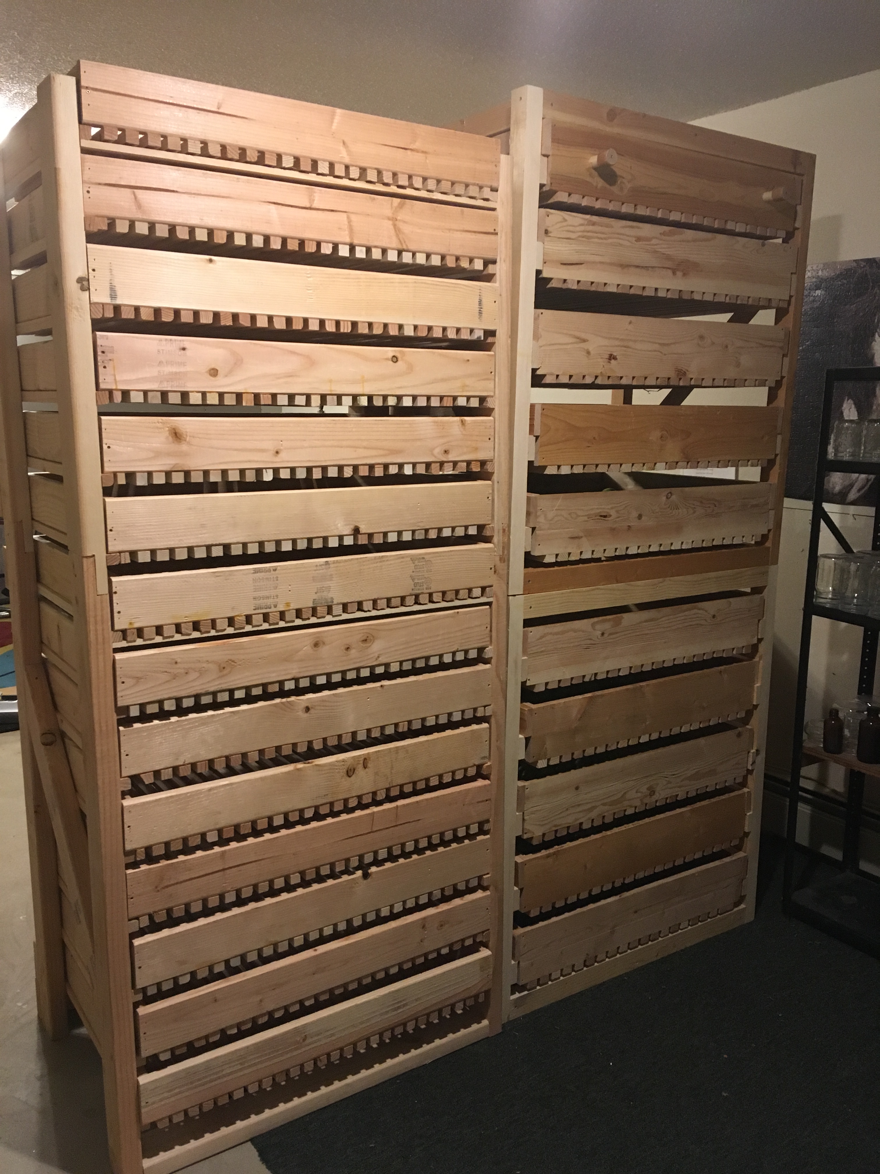 But this last fall we built some awesome root cellar racks to put them on, which saves us so much space.