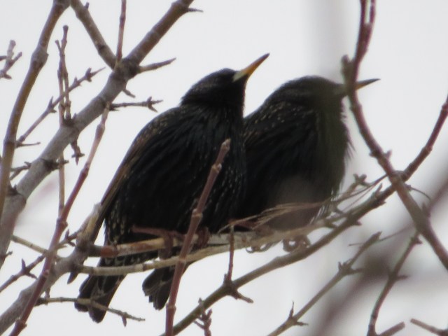 He laughs and says.. wait for it, and I look at him, I mean in this cold, we need to find them and get them set up NOW.. and he says so I was am walking around listening trying to find the source and the sounds come again.. and he looks up and sure enough one of these birds was making the sound..