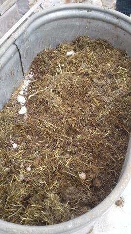 We hauled in a full load of horse that filled the trough 1/3rd of the way after that, we did another full load of rabbit/bedding mix and filled it to the 2/3rds mark. I need room to dig and turn the poo to work it into compost and then fill that top part with soil to plant in at a later point in the process.