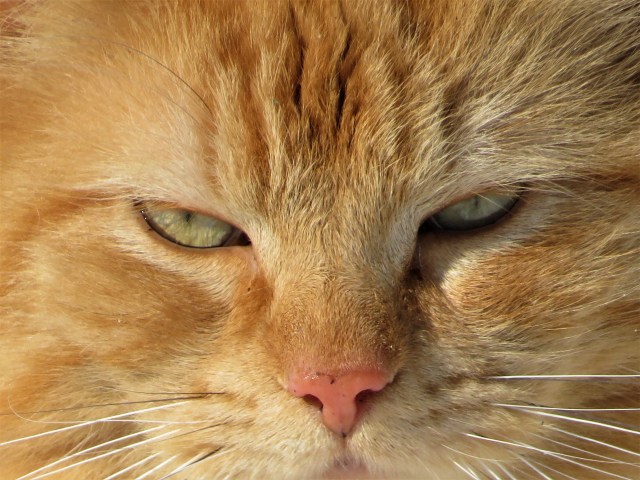 Patrick was giving the eye to the birds at the feeder and was facing the sun so he had crazy intense look at the time..