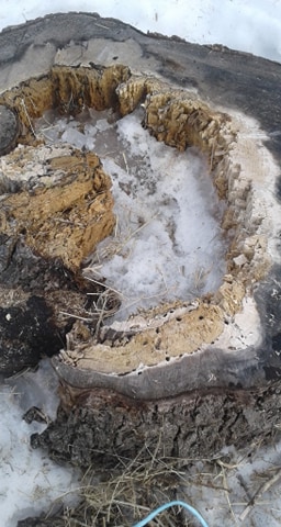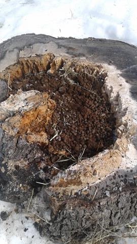 Well, Spring is here! This past week, I took a shovel out and removed layers of snow on top and around the stump itself, as once its exposed to the sun it will warm up faster.