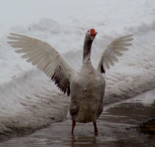 When I went out to do morning chores, they were talking.. they are so loud.. I have had my own geese out and enjoying them in the yard at least until I was attacked twice.. they are feeling spring as well.. so they are moved into their own pen off the pasture to keep them out and enjoying the fine weather.