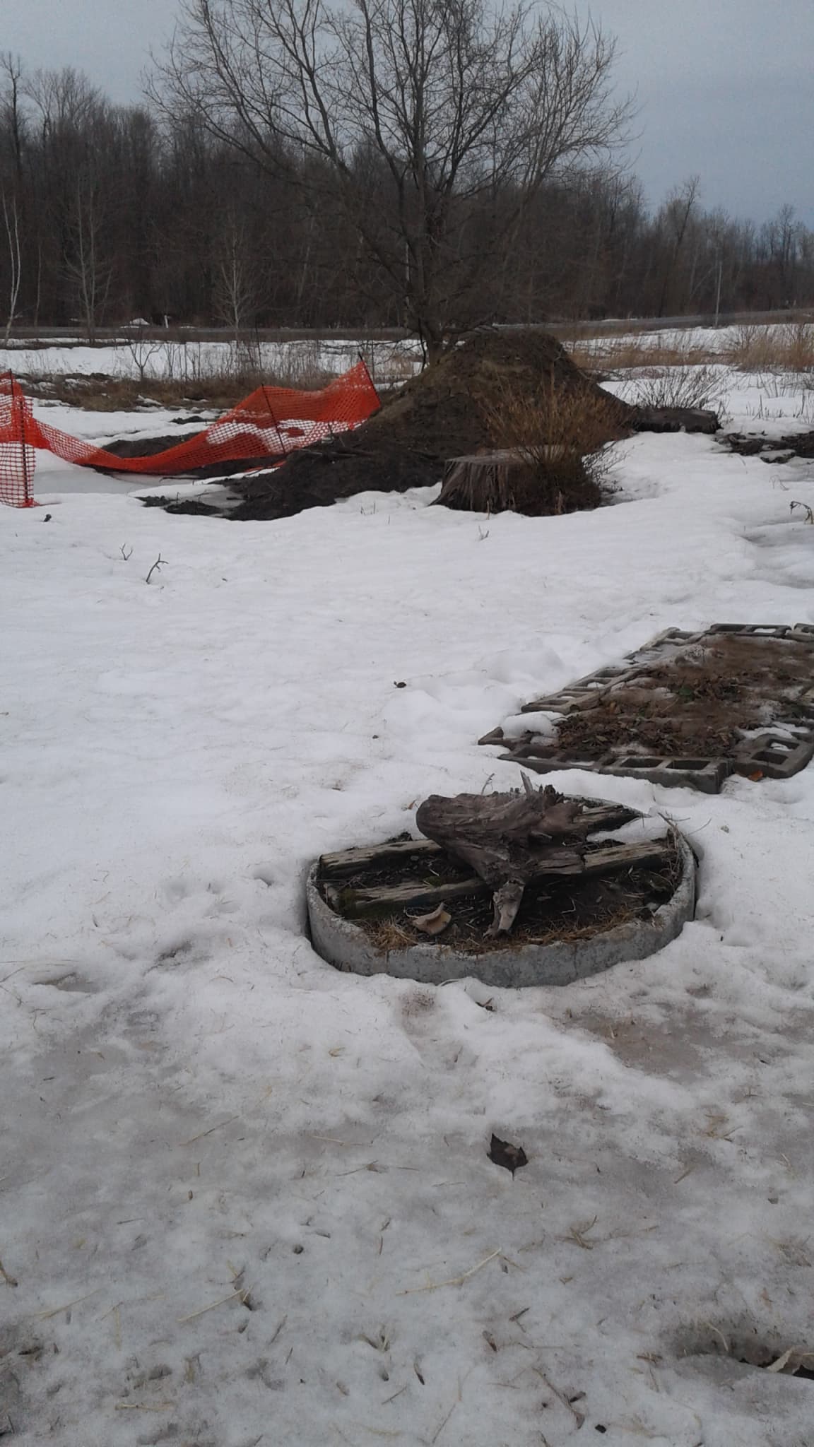 This area is the bale garden, compost pile mound gardens and if you want to look closer, you can see the new line of big cedar fence posts that went in last year and will be newly fenced this year.. I have tree’s that need to come down this year..