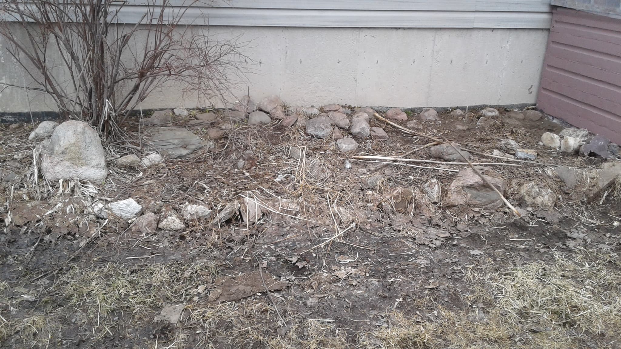 This is the front bed, while it needs a spring clean, it is in fact filled with a great number of come back plants but there is plans on expanding it this year as well.. more on that soon.. I have had it with mowing that little patch.. time to turn it into garden space.. or at least herb growing space.