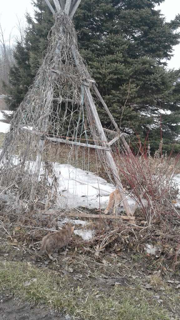 Speaking of babies.. we got the first clean up round done around the teepee garden (above before) and that included trimming down all the “pop up” rose bush babies that need to be dug out and moved to different locations. Looks so much better now and once it dries out a bit more and I add a inch or two of compost to dig, I will get it early spring planted out and prepped for the full planting on it by may long weekend..