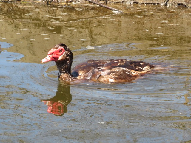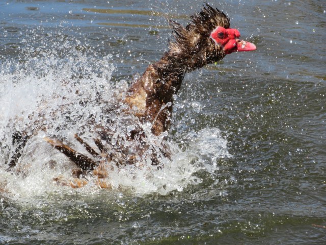 nd This is Solo the single ducklings born far to late in the fall last year that hubby adored, he has grown into a good looking young drake.. enjoying his swing and bath time.