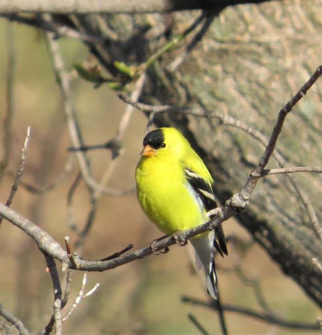 Two mated golden finch pair in the yard.. bright flashes of yellow here and there..