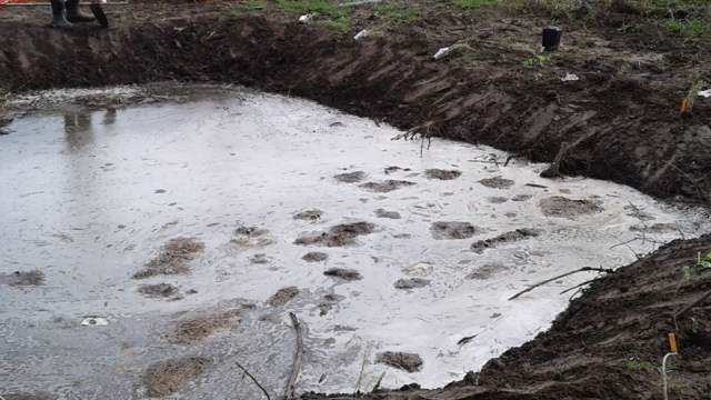 The older pond is by the big barn in the main pasture.. this is the new front yard part of the rain storm catchment system with the over flow moving into the rain garden area.. yes new, dug last fall..