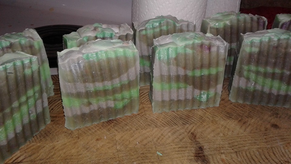 I was teaching how to make soap that day and so I let the student pick the colors of the soap to blend and put together.. we ended up with a very funky three tone camo soap!