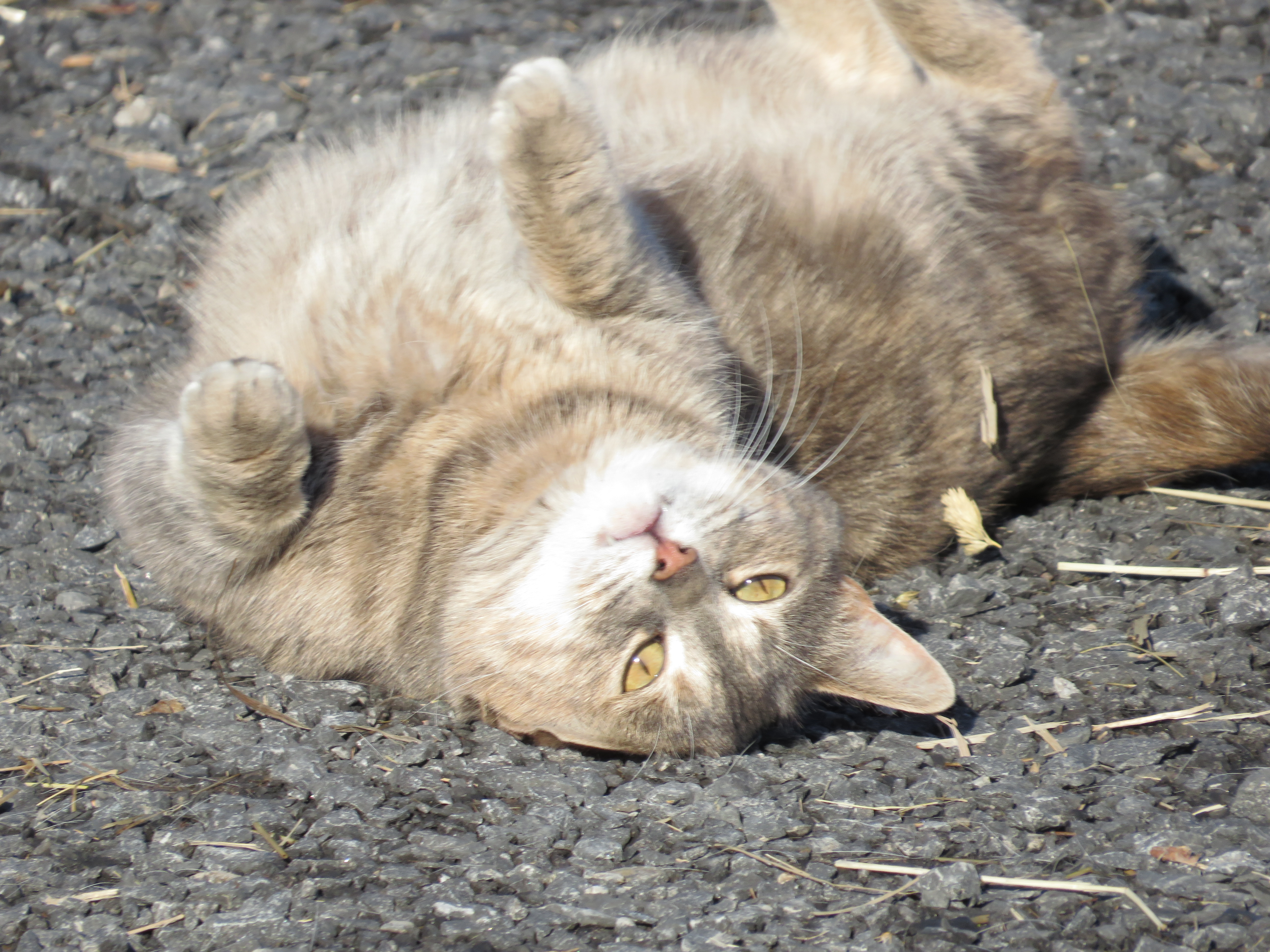 A year old coming 5 is Sofie The oldest female on the farm.. she is a huge hunter but also the biggest flop, drop and roll.. but its all for show.. DO NOT PET THAT BELLY LOL