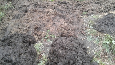 This heavy wet muck.. now what is muck you ask.. well.. its crazy active blend of soil/hay bits and horse manure with a bit of duck/sheep thrown in it.. its the wet fall area that builds up around the big horse feeder.