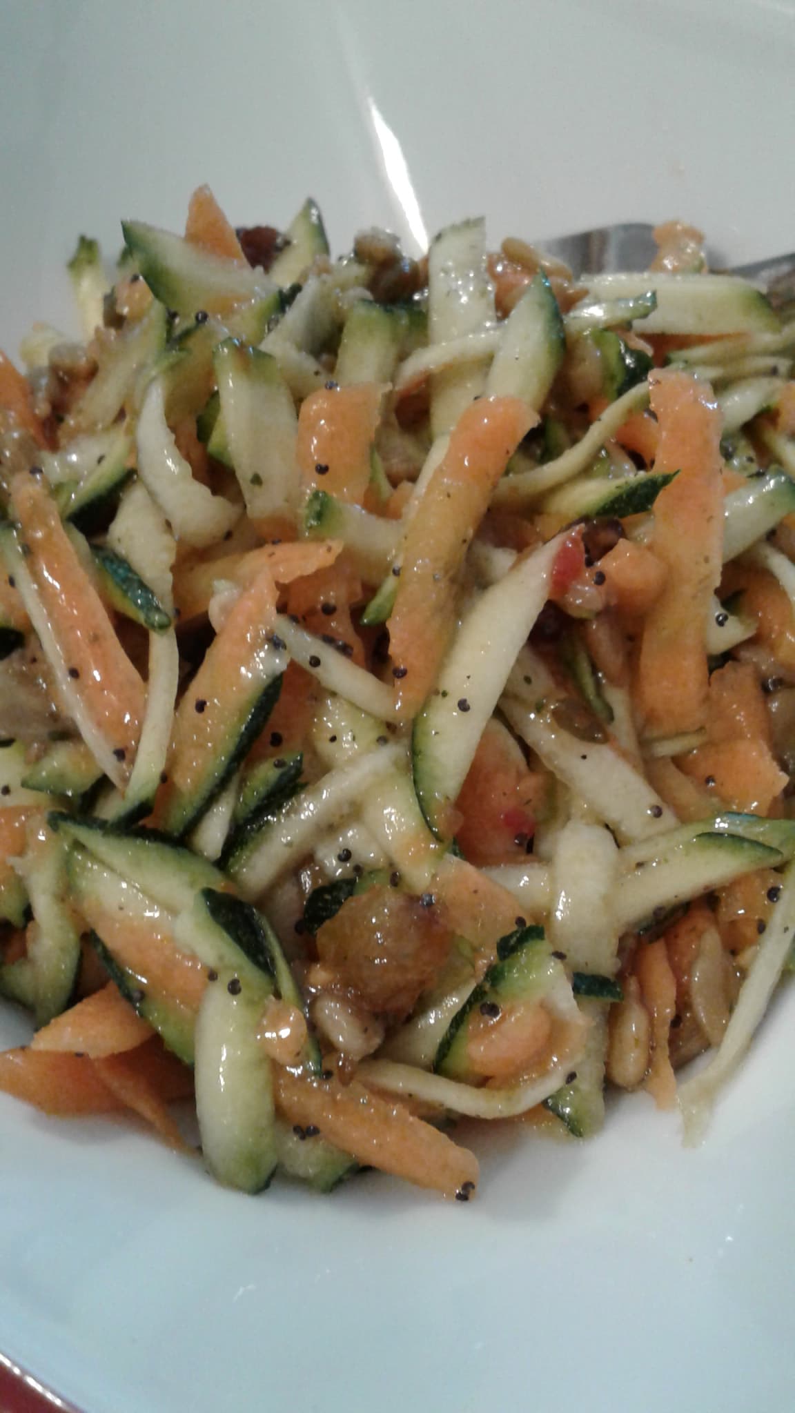 Hmm… Re ‘making the carrots… soggy”. What if you squeeze some of the extra moisture out of the zucchini right after shredding /before making the salad? Maybe save it (ice cube trays: ) for smoothies or adding to the animal feed?