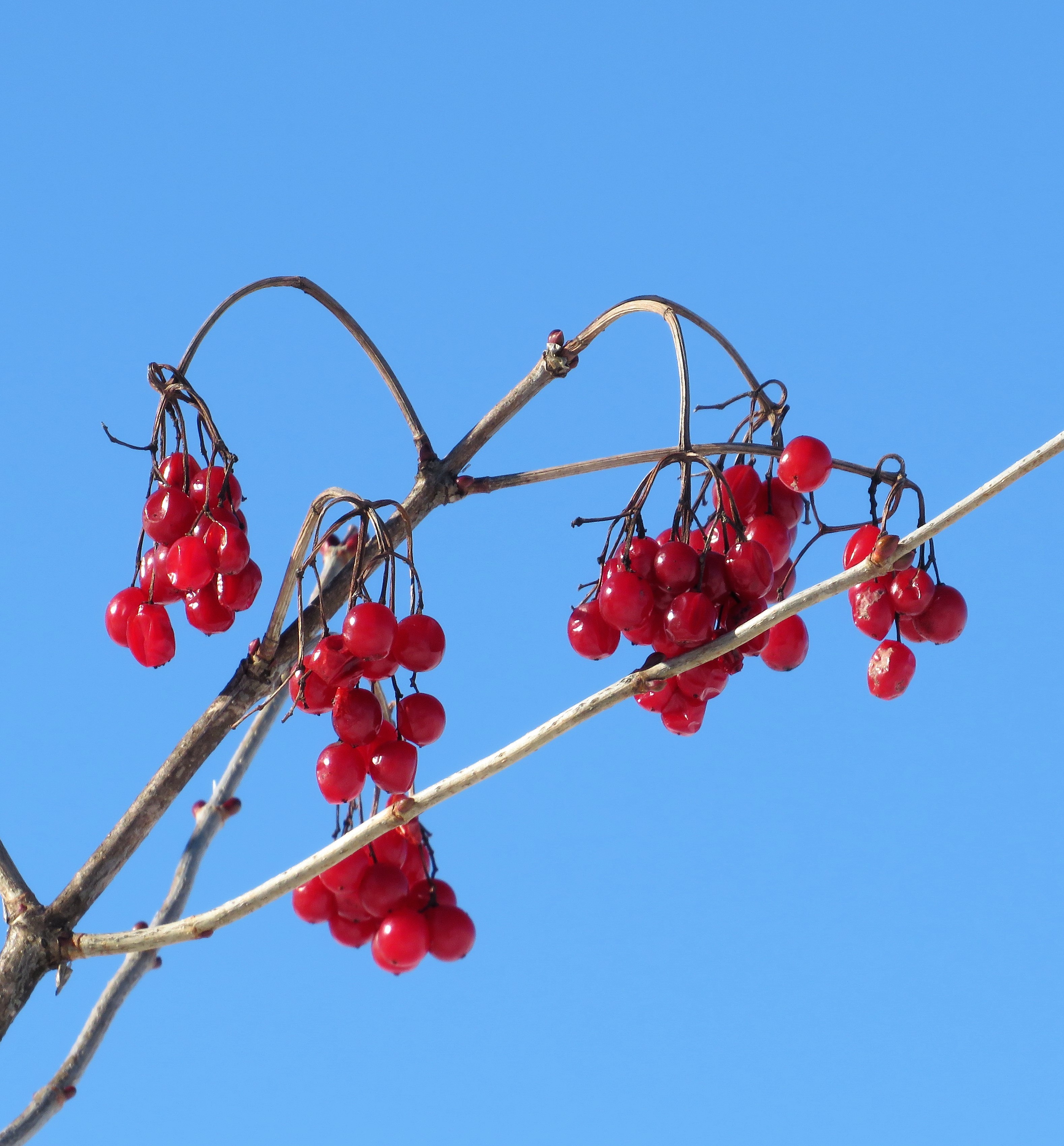 The wild birds by about 200 give or take a few dozen on any given day are thriving on their BOSS.. While they have cleared all the other trees, the seed bearing grasses they are not eating the high bush cranberry fruit.. spoiled birds lol