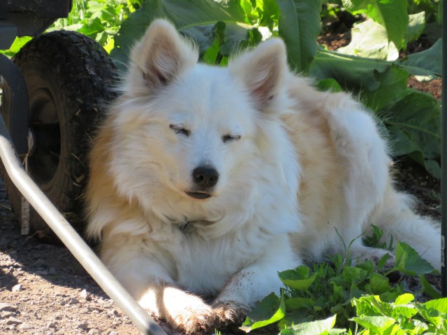 Fitting that her last photo taken (without knowing it would be her last) had her hanging out in the shade of the garden wagon as we were working in the yard.. We had plenty of warning that she was aging rapidly, last fall of 2020 having been the last time she went on a longer away from the farm pack hike..