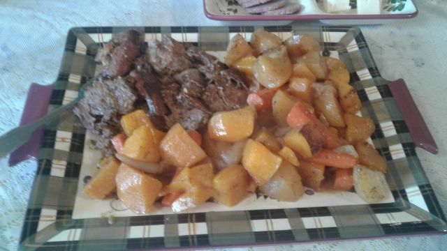 Sometimes the you just need the classics.. Slow roasted meat with huge amounts of root veggies..  Simple and yet not.. we have all had those dry pot roast or the swimming in fat leg of lamb and those root veggies.. well, its hard to not enjoy roasted roots but there are a few that do not really work in a mix (example beets, I love roasted beets they are a huge favorite but they will effect the color of all the others roasted with them in the pan, just not a good pick)