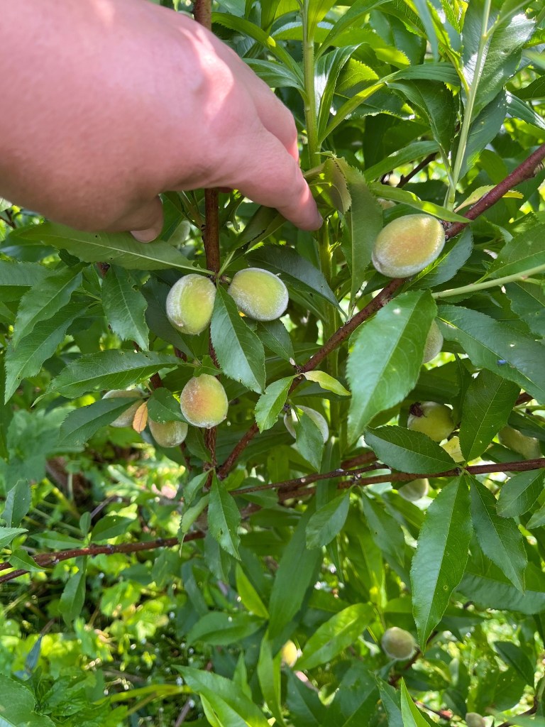 Peaches, first year for harvest from our seed started peaches, all three trees produced 20 plus pounds each, over a hundred pits of the best have been selected and saved to grow more peach trees from.