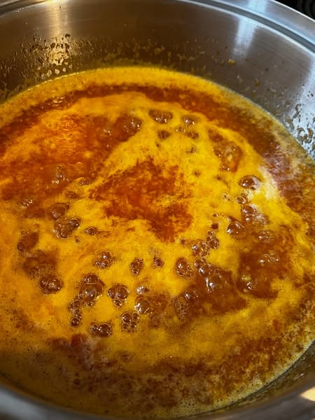 Remember to scrape down your sides and to stir often, this is a putter in the kitchen close by time, not a walk away and leave it, it will seem to simmer, simmer but once it goes, it will go quickly!