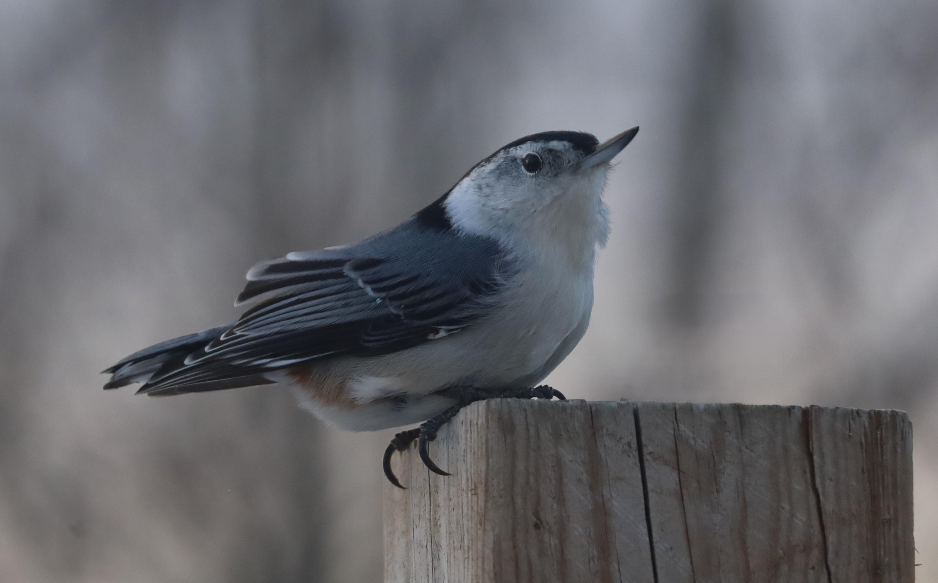 Rarely do you get a photo of a white breasted nuthatch not hanging upside down!