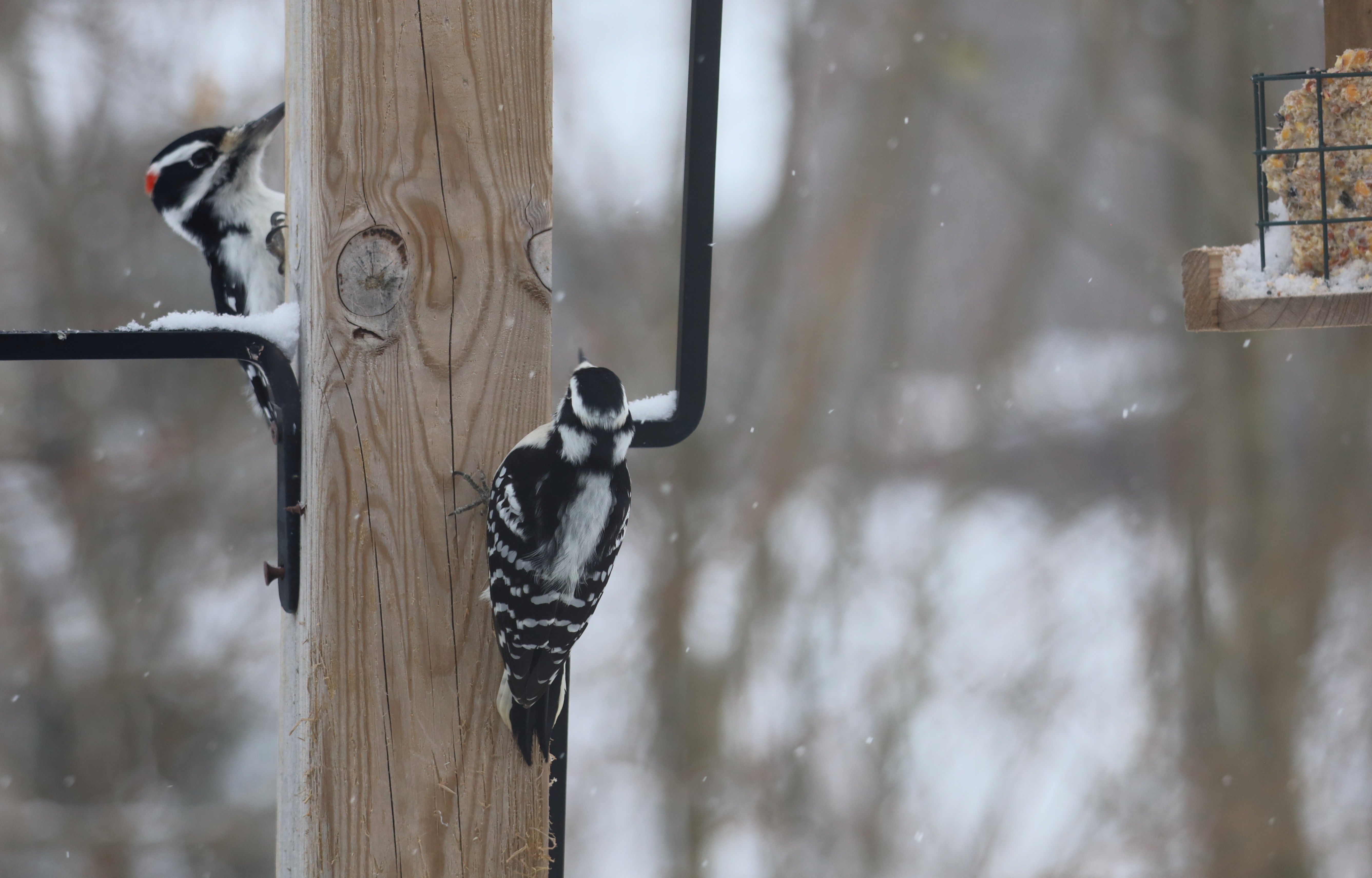 We are blessed with two types of woodpeckers and we have a mated pair of them always, some years the females will have two males in a three way bond, i have seen this in Gold Finches as well