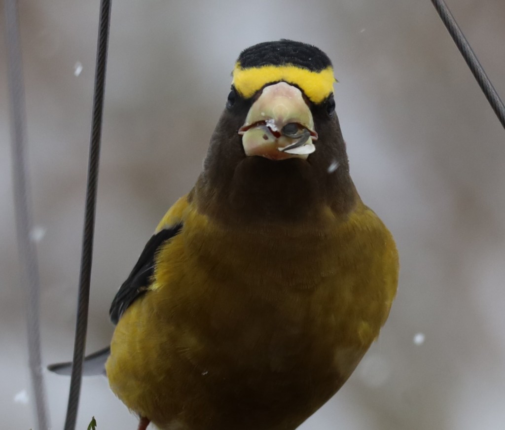 But most of the time its more common to our area birds, the Evening Grosbeaks are bright and colorful! The older males are so much brighter then the young males.