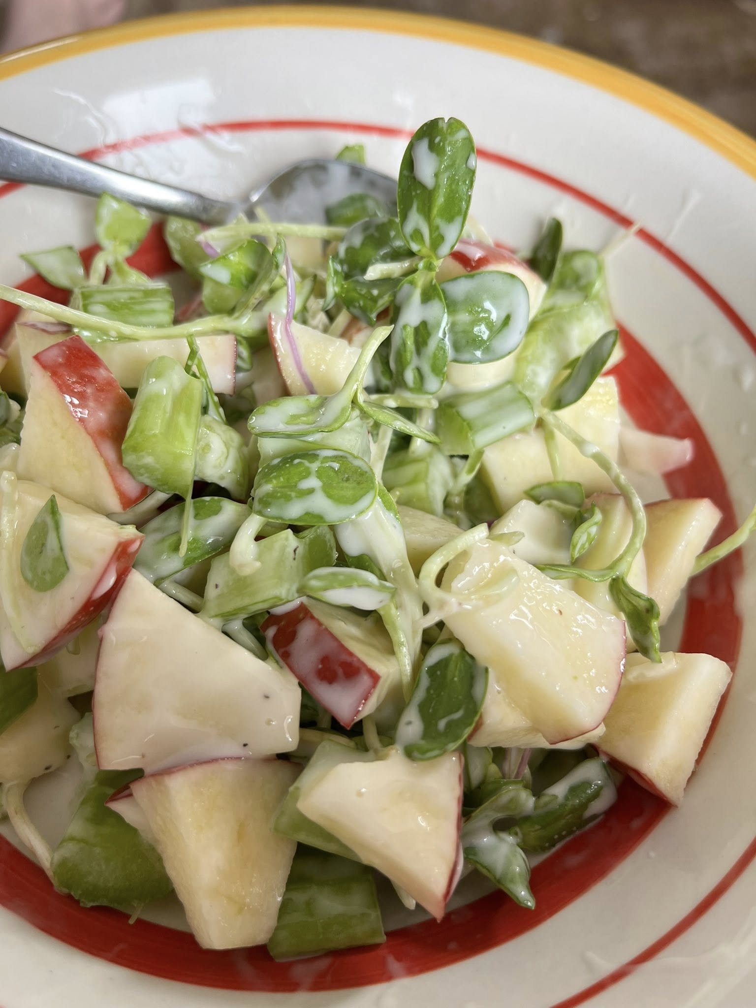 Now, because we are trying to lose weight and eat our greens, the salad bowl point in fact cost more to make then the egg dish. and it was tasty but with apples currently at around a dollar on their own, it was at least a 2 plus bowl. I could have brought the salad bowl price down by making it cabbage or carrot or beet based instead of apple/celery