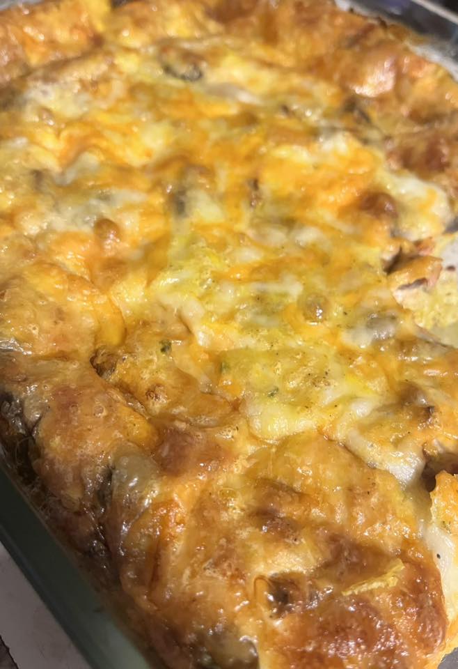 Cut into supper portions, to be served with a side salad of your choice, in my case it was a apple. sunflower sprouts, celery and fixings, it will serve 8, cut into breakfast portions, it will serve 12, Reheat in oven or fry pan without lid