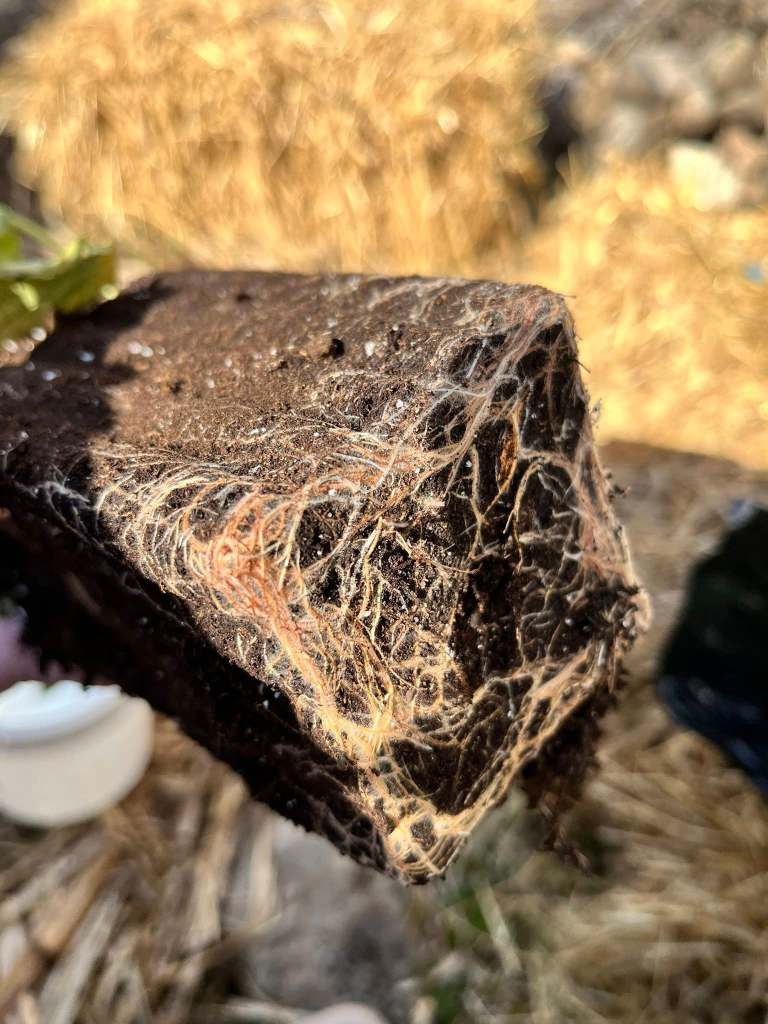 They came out in a beautiful solid cube to be transplanted into the nursery cold frame bed, i will do a count on what is needed in the Farmgate Park Garden and the rest will be potted up and put up for sale
