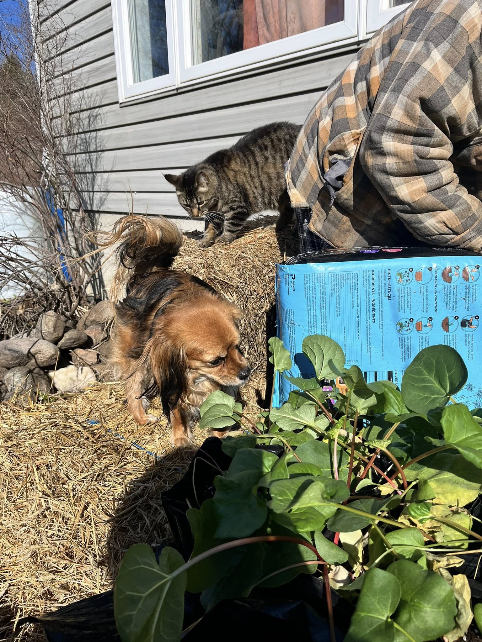 Fat Cat, Pitter Pat and with our other farm cats are always happy to help, they are great support indeed LOL Miss Fancy is also always there, at a full grown up young farm dog, she came in at a big old whopping 12.5 pounds at last vet check which makes her smaller then all the male farm cats but bigger then the females.