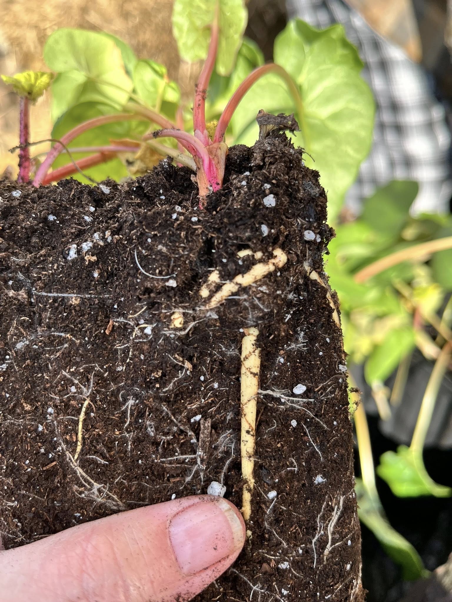 By choosing to start my own rhubarb, i will be able to compare all the different plants for type, taste, brix sugar content and will be able to both fill the bed and keep my current mature plants production available to me this year and beyond.