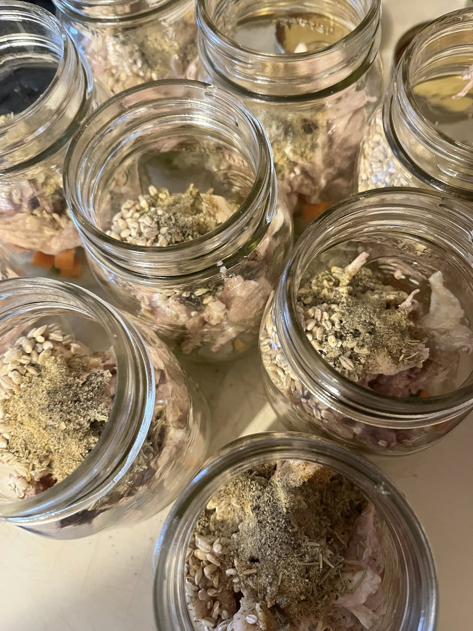 Remember to wipe your rims with clean water or vinegar, lids finger tight and as they are pints 75 min at 10 pounds pressure at my sea level, please check your pressure canner to figure out if YOU need to adjust due to your sea level