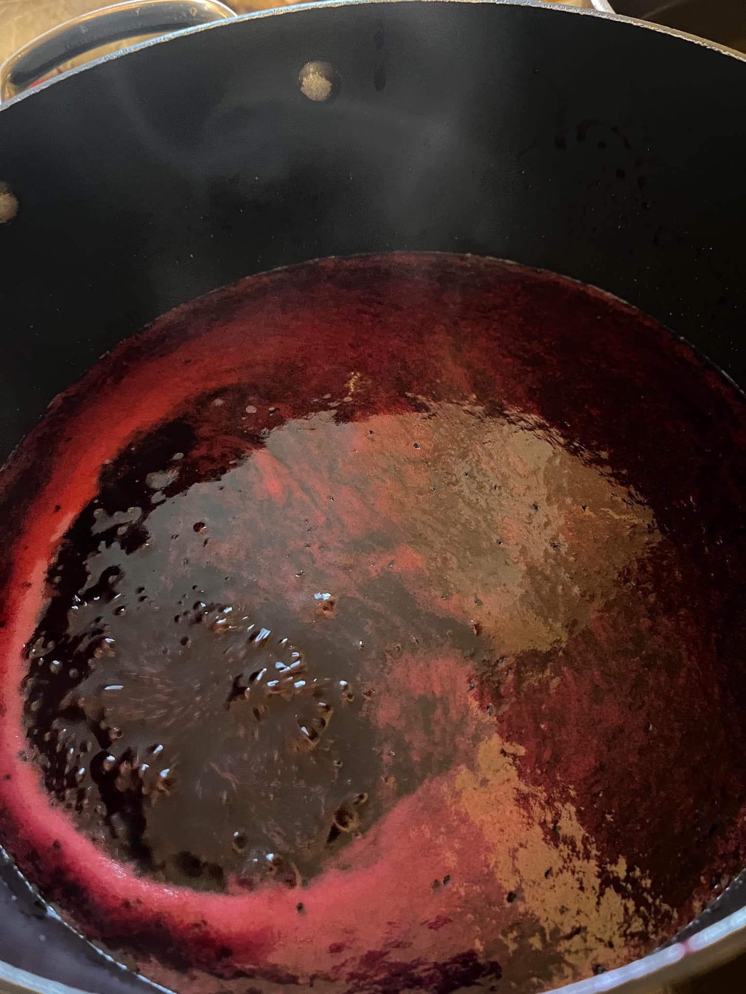 Water to just cover them, cook med heat till skin is popping, mash and simmer low for ten more minutes, put them though a food mill or fine mesh strainer to get all the juice and as much pulp as you can leaving behind the seeds/skins